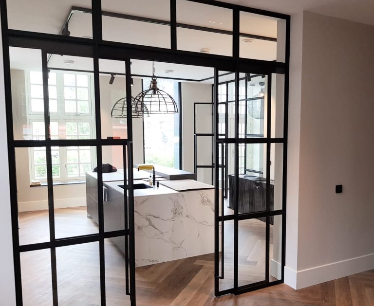 Een enkele vaste wand, of vast kozijn wordt meestal tussen 2 muren geplaatst waarbij u de ruimte op een elegante manier wilt scheiden van elkaar. Het is hierbij uiteraard ook mogelijk om de stalen wand op allerlei manier uit te voeren. Denk hierbij aan de vakverdeling, of helemaal geen vakverdeling.